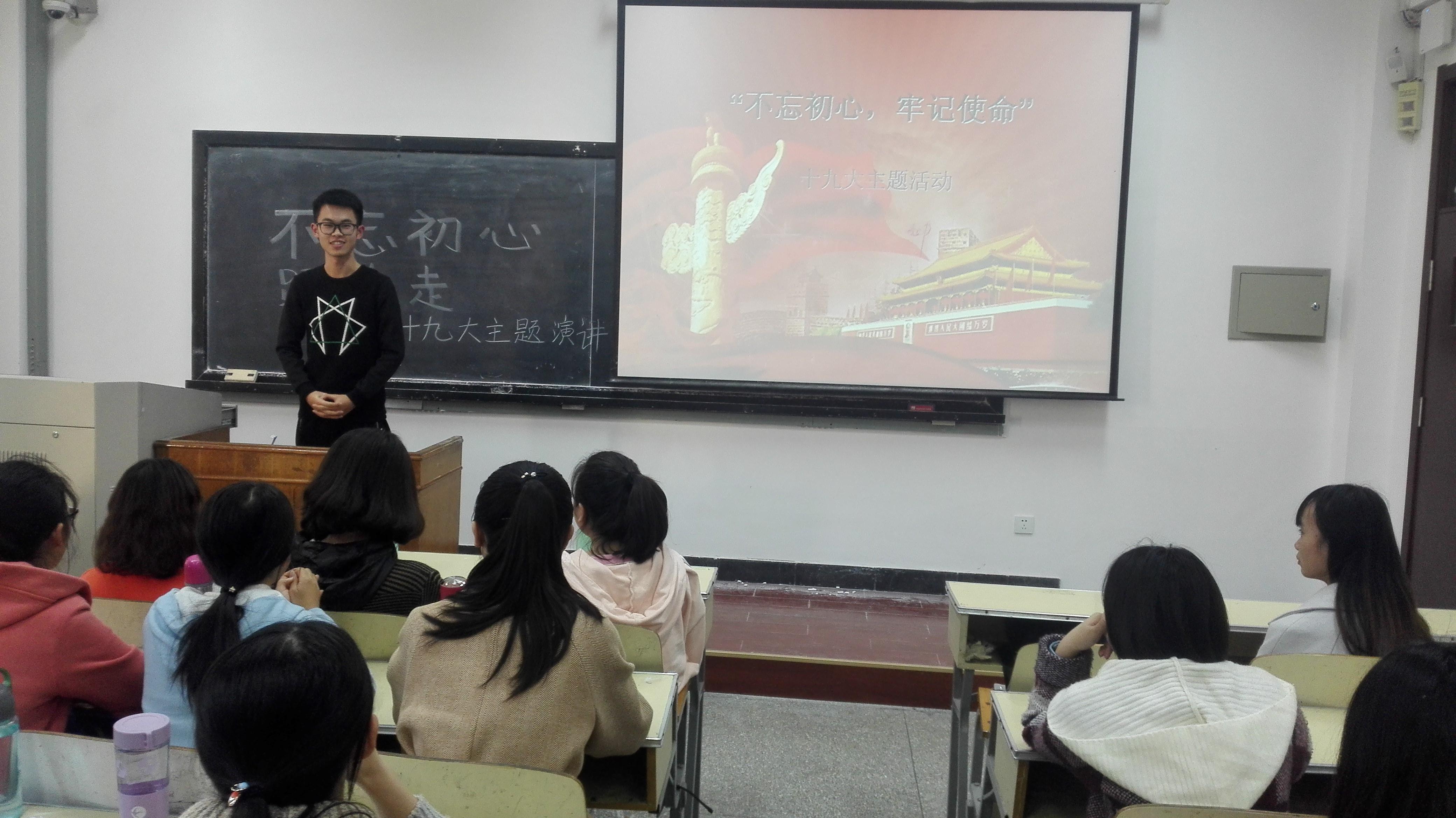 各支部团日活动的内容丰富,形式多样。其中15级信息与计算科学二班团支部独具匠心,采用辩论的形式,以“电子阅读VS纸质阅读”为主题来聚焦十九大。紧扣十九大重点推行的政策方针,辩论双方进行了一场有理有据的唇枪舌战,从物质和精神两个层面深刻剖析了我国生态现状与精神文明建设,也为自己融入十九大营造了良好的氛围。15级统计一班团支部则是开展了以“不忘初心,跟党走”的主题演讲比赛,让同学们感受十九大的风采,同时认识到新世纪,新的阶段。面对复杂的国际国内形势,我党面临着更大的考验和挑战。只有团结一致,听从党的指挥,我们才能从容应对。而我们,作为当代老员工,更应该承担起肩上的使命,为祖国的崛起而奋斗。15级应数师范班团支部的活动由浅入深,在观看了习近平主席所做十九大报告的经典视频节选,以及从“五位一体”、“四个全面”解读十九大的专家访谈视频后,同学们通过自由讨论,更加深刻理解了这份报告的内涵和价值。15级应数创新班团支部则组织观看了红色主题电影,通过影片见证党的成长,认识到党对人民的深远意义。在回顾过去的同时,珍惜现在,展望未来。15级统计二班团支部还开展了“喜迎十九大,共筑中国梦”的签名活动,一张红色的卡纸上不仅仅承载着同学们的誓言,更见证着他们的成长以及同学们对建设富强民主文明和谐美丽的社会主义现代化国家的梦想与憧憬。此外,15级信息与计算科学一班团支部以及15级应数一班团支部也分别开展了有关十九大的主题班会与班级研讨会,让同学们近距离接触十九大,同时也让同学们深刻地体会到,作为青年,一定要按照习近平总书记提出的“四要”的要求,唯如此,才能永远保持锐意进取、不断创新的精神。把责任扛在肩上,勇于担当,开拓进取,在实现中华民族伟大复兴的伟大征程中不枉青春走一遭。